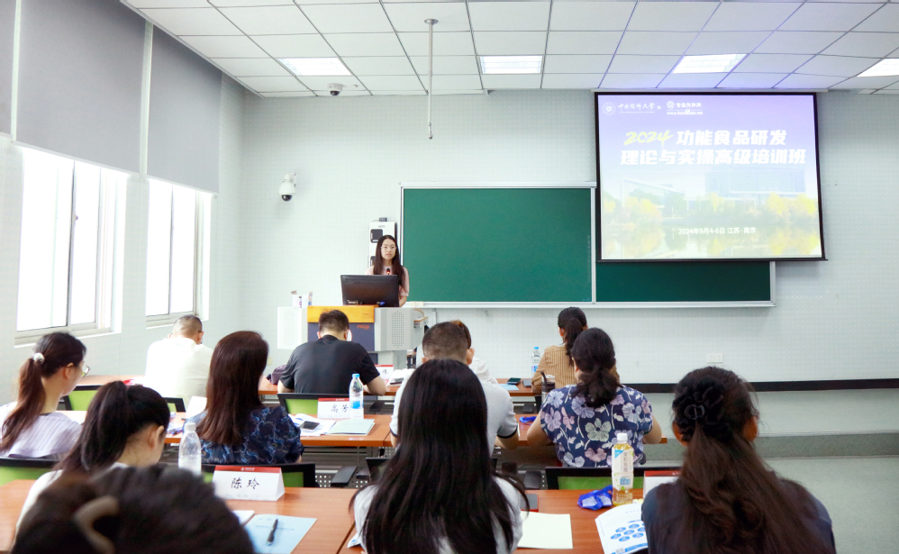 随后,来自中科院江苏省植物研究所的吕晔教授为学员上了题为《功能食品原料选择和配方设计中的关键技术问题》的第一课,受到学员们一致好评。