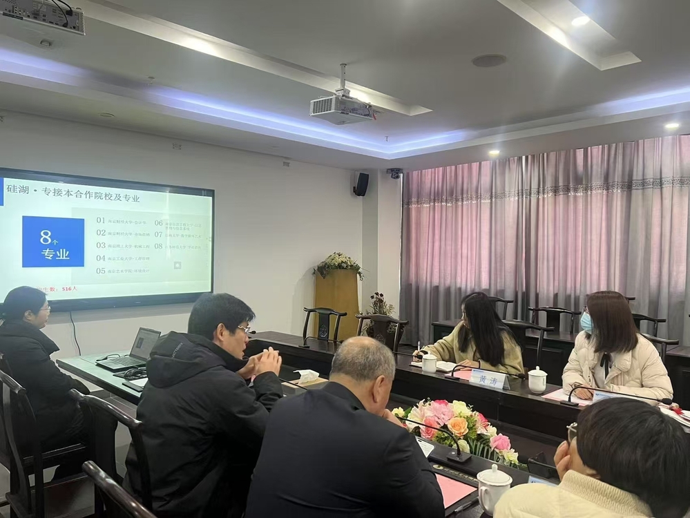 1月3日上午,william威廉亚洲官方自学考试办公室负责人黄涛、招生负责人胡乃凤前往硅湖职业技术公司进行调研交流。硅湖职业技术公司william威廉亚洲官方经理刘长乔、健康产业公司经理乔爱国、副经理郭文霞、以及招生、教务主管老师共同参加了交流会。