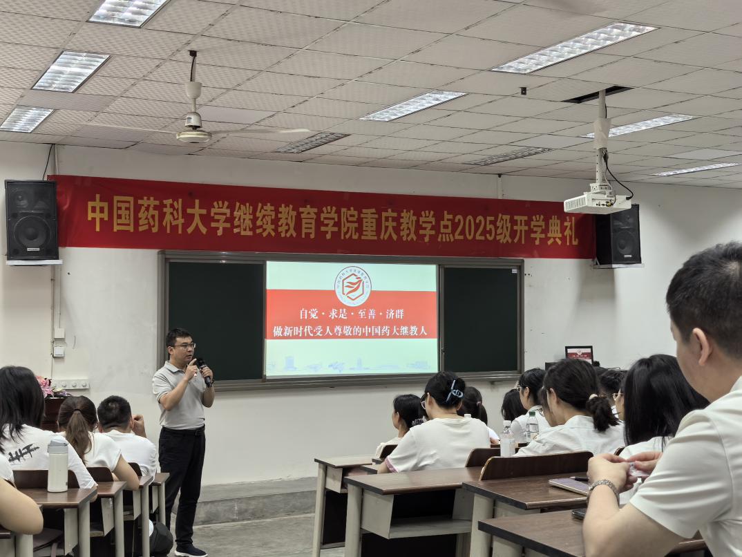 开学典礼在国歌声拉开帷幕。张杨彬向新学员致以诚挚欢迎,对重庆教学点多年的支持与合作表示感谢。他期望同学们能牢牢把握学习机会,妥善平衡好工作与学业的关系,潜心钻研专业知识,力求掌握精髓要义,不断磨砺自身本领,提升精神境界,为我国蓬勃发展的医药卫生健康事业添砖加瓦。