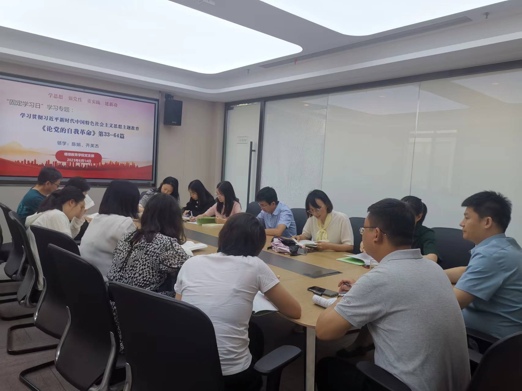 张永泽书记在第五期领读领学总结中充分肯定了党员老师们高度重视学习、深度参与领学的积极性和认真投入的态度,希望通过集中学习能把优良的学习之风、严谨的调研之风和勇敢的自我革命精神传承下去,以高度的责任感和使命感投入到继续教育高质量发展的事业中。