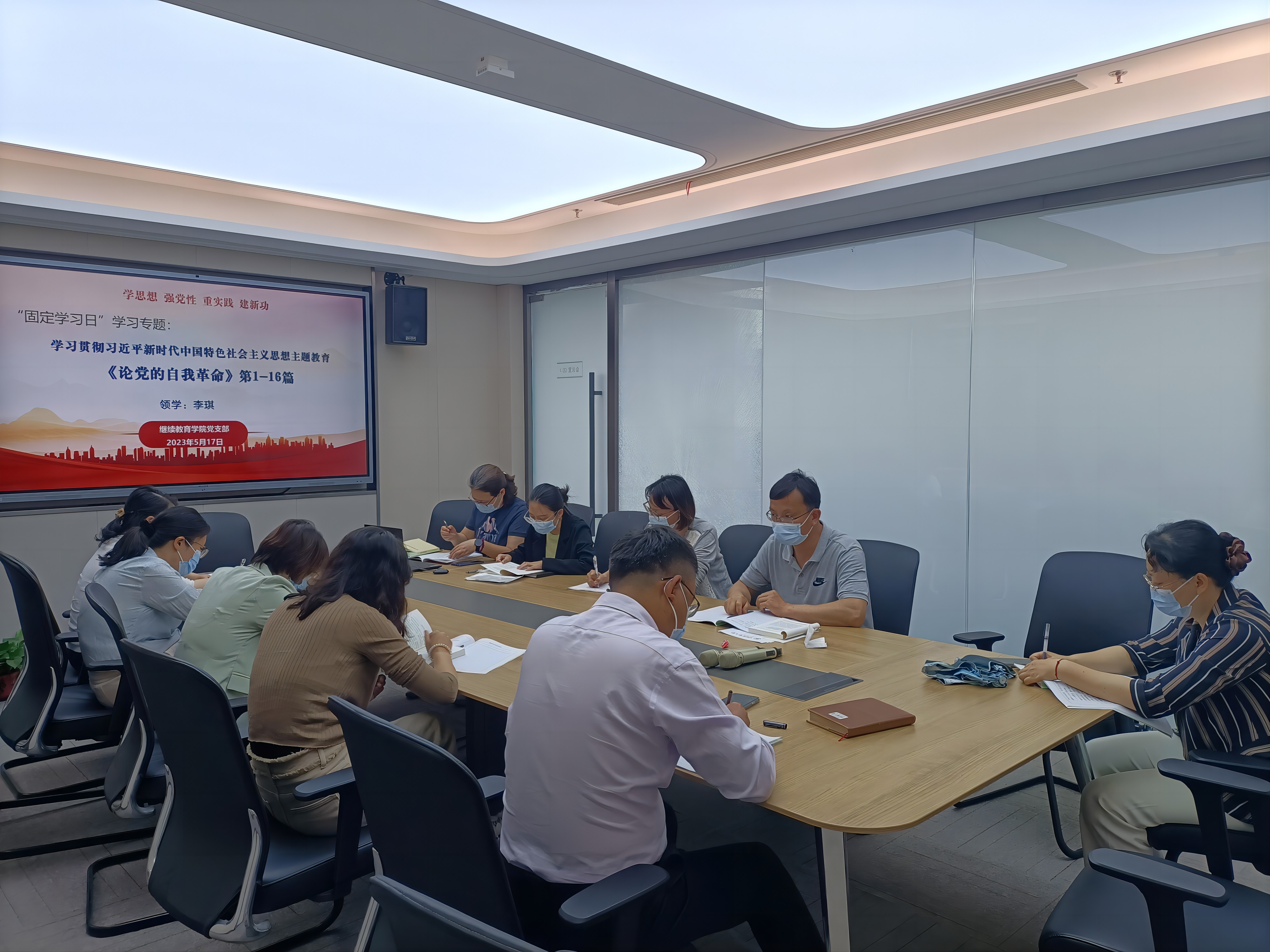 学习中,李琪老师重点领学了《论党的自我革命》第1-16篇内容。她带着与会党员逐一了解每篇内容的背景、要点和对工作学习成长有启发的部分,真正发挥了读原著、学原文、悟原理的重要作用。