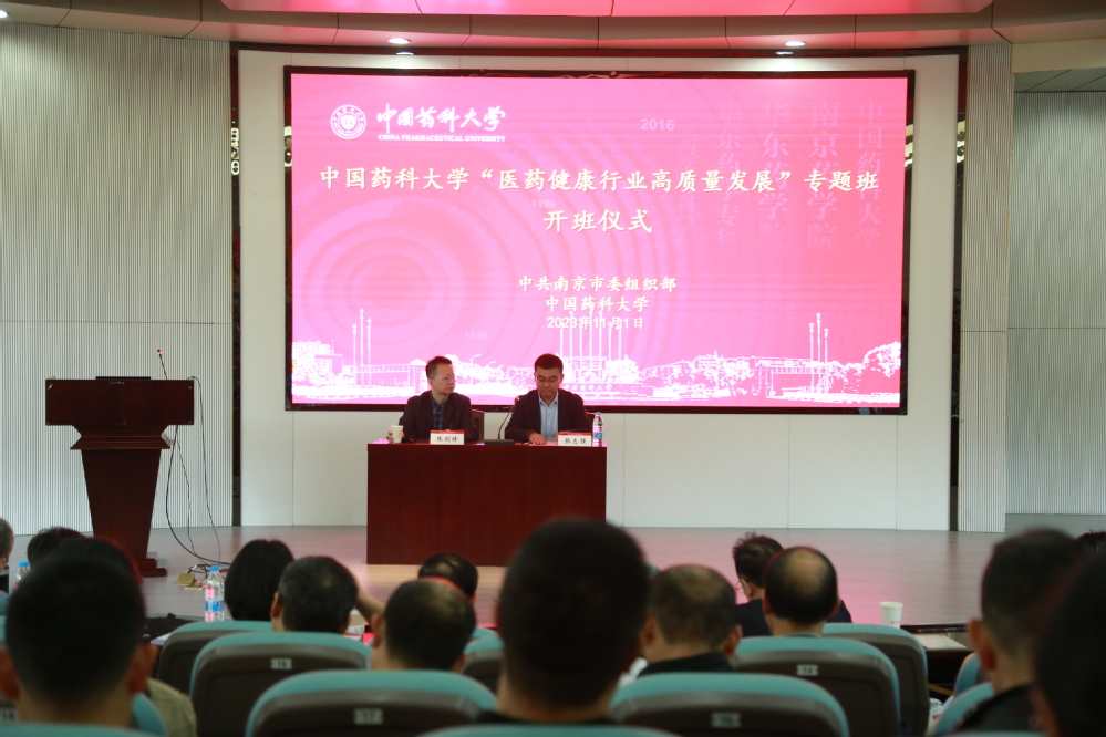 仪式中,张志强副经理首先致欢迎辞,对市委组织部的信任与支持表示由衷感谢,对南京市各地领导干部表示热烈欢迎。他简要介绍了公司、公司的发展历程及本次培训班的整体设计,希望通过培训能够帮助参训的领导干部们较深入地了解药学的发展历程、医药健康行业的发展现状和未来趋势。