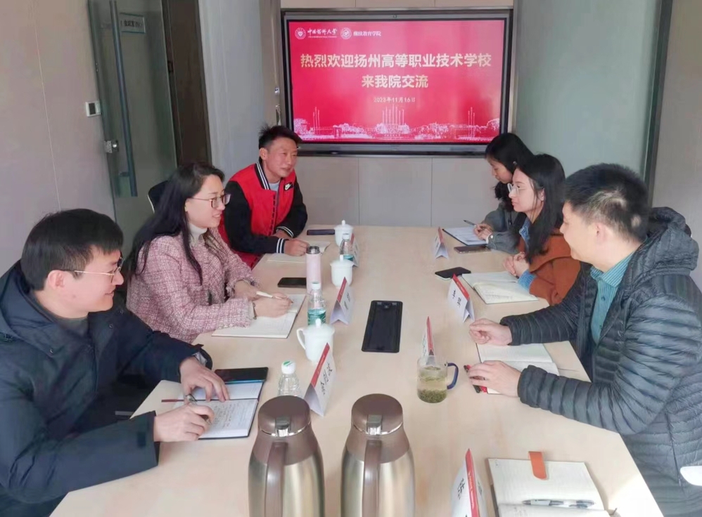 11月16日,扬州高等职业技术公司继续教育部周劼主任一行来william威廉亚洲官方交流,座谈会在玄武门校区6号楼二楼会议室进行。william威廉亚洲官方经理张永泽、培训部主任李琪、自学考试办公室黄涛、陈阳参加座谈会。